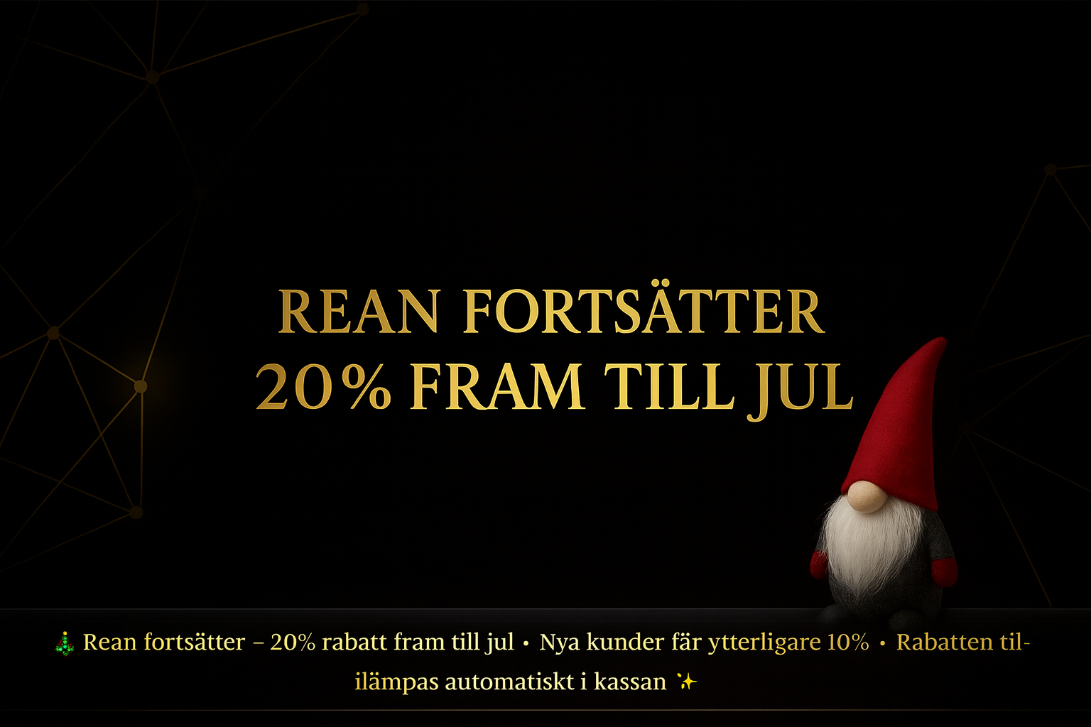 🎄 Rean fortsätter – 20% rabatt fram till jul • Nya kunder får ytterligare 10% • Rabatten tillämpas automatiskt i kassan ✨